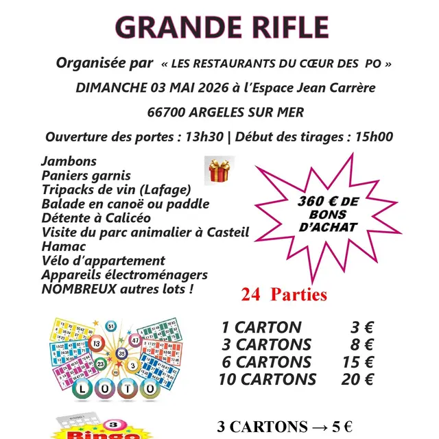 RIFLE AU PROFIT DES RESTOS DU CŒUR DES P.O