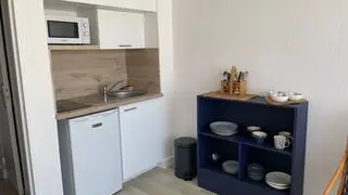 Studio de 20 m2 au premier étage d'une résidence sécurisée avec piscine.La plage se trouve au bout de la rue, à 2 mn à pied. La vue sur la mer apparaît dès la sortie de la résidence.Quartier calme, commerces et centre animé sont accessibles à pied, par l'agréable promenade de bord de mer.Possibilité de se garer gratuitement dans les rues adjacentes.Le studio se compose d'un coin cuisine équipée, d'un coin salon avec télé et deux fauteuils, d'un coin chambre avec lit en 140cm, d'une entrée avec placard et penderie, d'une salle de bain et d'un balcon-terrasse exposé Est avec table et chaises de jardin.Pas de Wifi. Non fumeur. Animaux non autorisés.Durée du séjour : 3 nuits minimum basse saison et 6 nuits en moyenne et haute saison.Le linge de lit et de toilette n’est pas fourni. Le ménage de fin de séjour est à faire par vos soins.Bail de location saisonnière avec acompte de 30% à la réservation. Assurance villégiature exigée.Au plaisir de vous accueillir